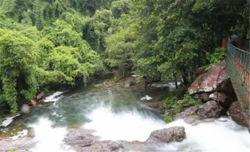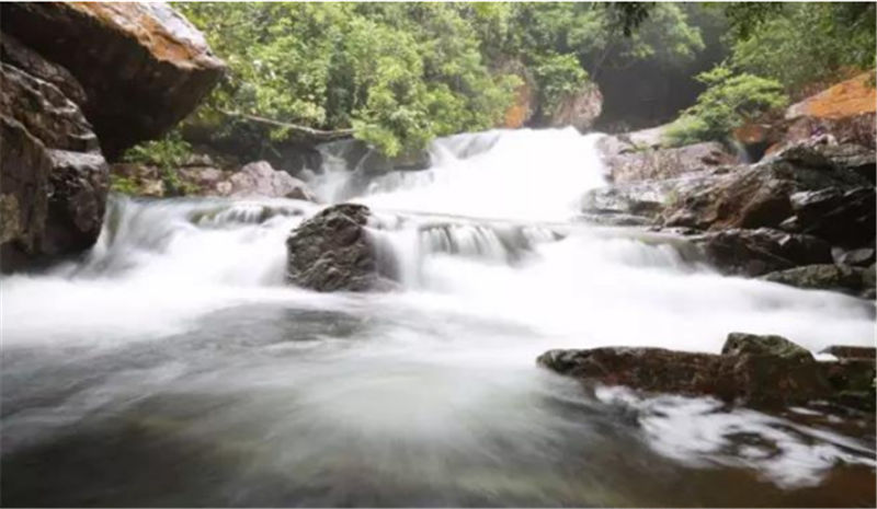 仙女池瀑布,一源兩流的巨大水流從高空落入谷底,在遠(yuǎn)處就能聽到振聾發(fā)聵的聲音,像萬馬奔騰從天上來,氣勢(shì)恢弘。