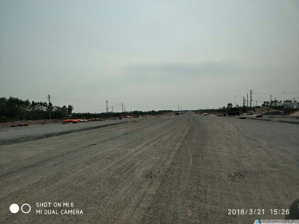 該項目于2017年2月22日進場施工,道路約1060m,路寬60m。主要建設(shè)內(nèi)容:道路工程、交通工程、排水工程、照明工程和綠化工程等。合同價59958018.42元,工期200日歷天,行車道及非機動車車道級配碎石鋪設(shè)約90%,k2+200及k1+900處過路管全包施工。雨、污水管網(wǎng)基本建成,行車道及非機動車車道級配碎石鋪設(shè)約90%。施工單位中余建設(shè)集團有限公司,監(jiān)理單位廣西益建工程建設(shè)監(jiān)理有限責任公司。