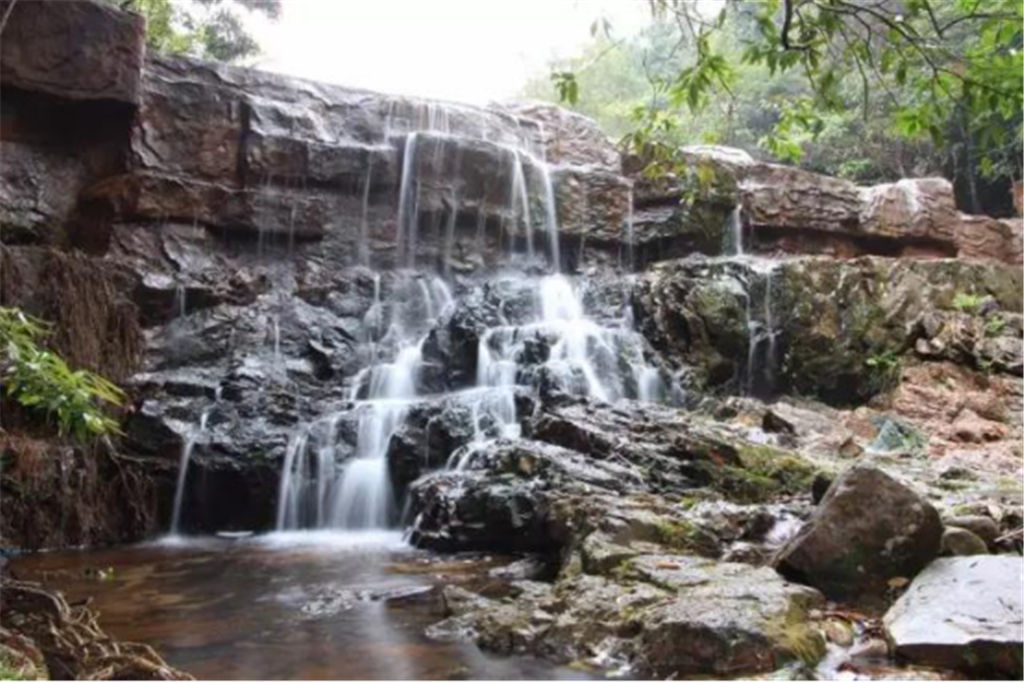 在仙女池戲水之后,我們沿著小路先后穿越了大片叢林和跨越了將軍橋,還觀看了可以遮風(fēng)避雨的寨亭,以及讓人乞福托運(yùn)的幸運(yùn)樹(shù)等風(fēng)景點(diǎn)。一路上,那些大小各異的泉潭,奇特的砂頁(yè)巖,的確使我們賞心悅目;而那些清澈的山澗,飛流直下的瀑布,更是讓我們心曠神怡。 難怪,同行的一位詩(shī)人會(huì)情不自禁地以《游欽州八寨溝有感》為題賦詩(shī)一首了,詩(shī)云:“相邀詩(shī)友出茶寮,閑步幽溝遠(yuǎn)鬧囂。仙女懷中沐澗水,將軍頭上竊一瓢。喜觀遍地野蘭長(zhǎng),驚訝參天鐵木搖。此景安能移北海?汲泉煮茗也逍遙!”