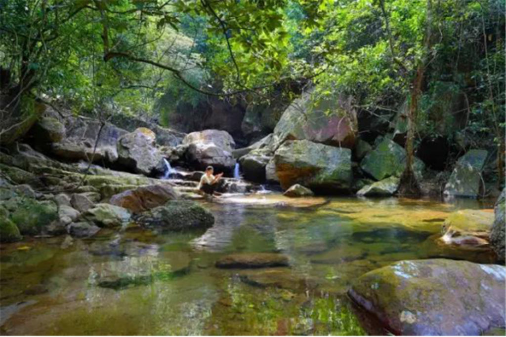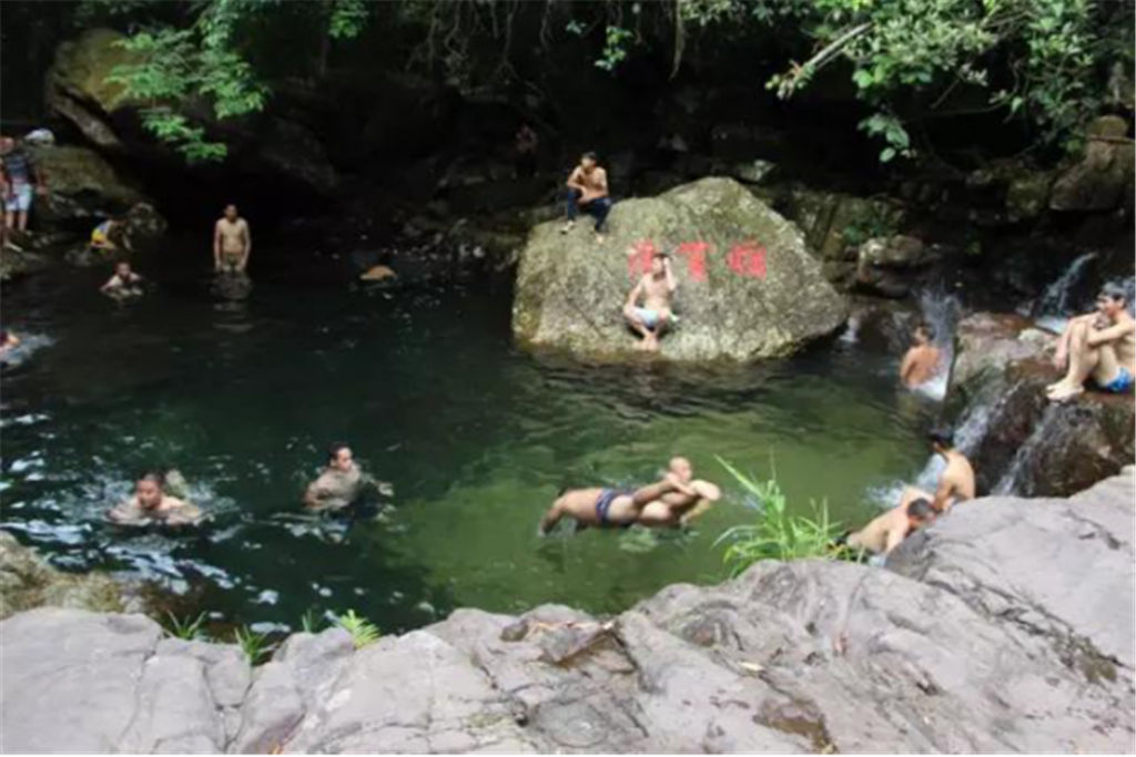 每個(gè)石潭不僅都有著美麗的名字,比如阿蘭灘、日月潭、將軍潭等等,而且每個(gè)石潭都仿佛是一個(gè)天然浴池,大的深達(dá)三、四米,可容上百人同時(shí)戲水;小的如浴盆,只容一兩人入浴。尤其是“仙女池”,更是一個(gè)盤(pán)踞其中的天然浴池,清清的水面上常?;\罩著一層淡淡的水霧,平添幾分神秘。