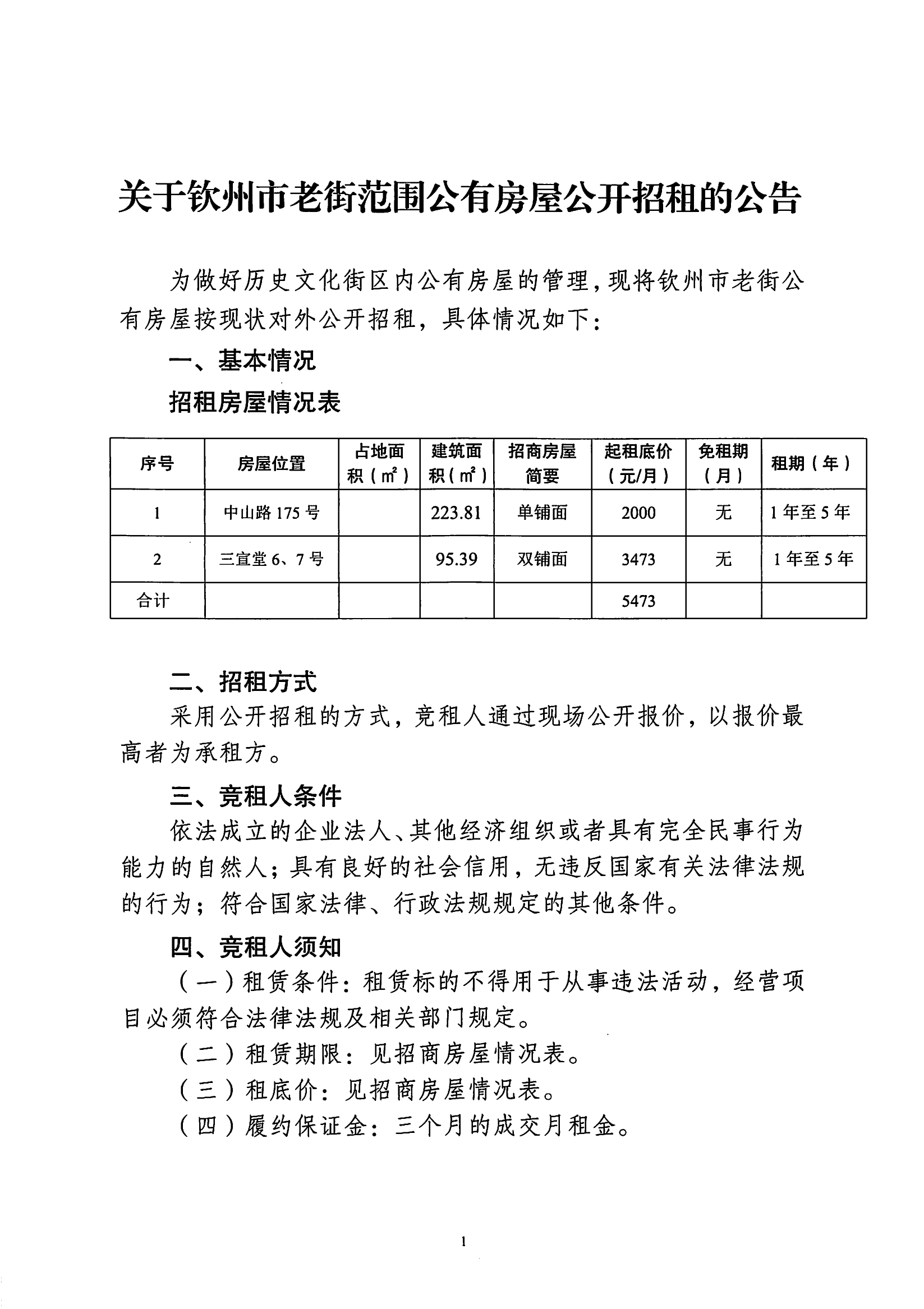 關(guān)于欽州市老街范圍2處公房公開招租結(jié)果公示