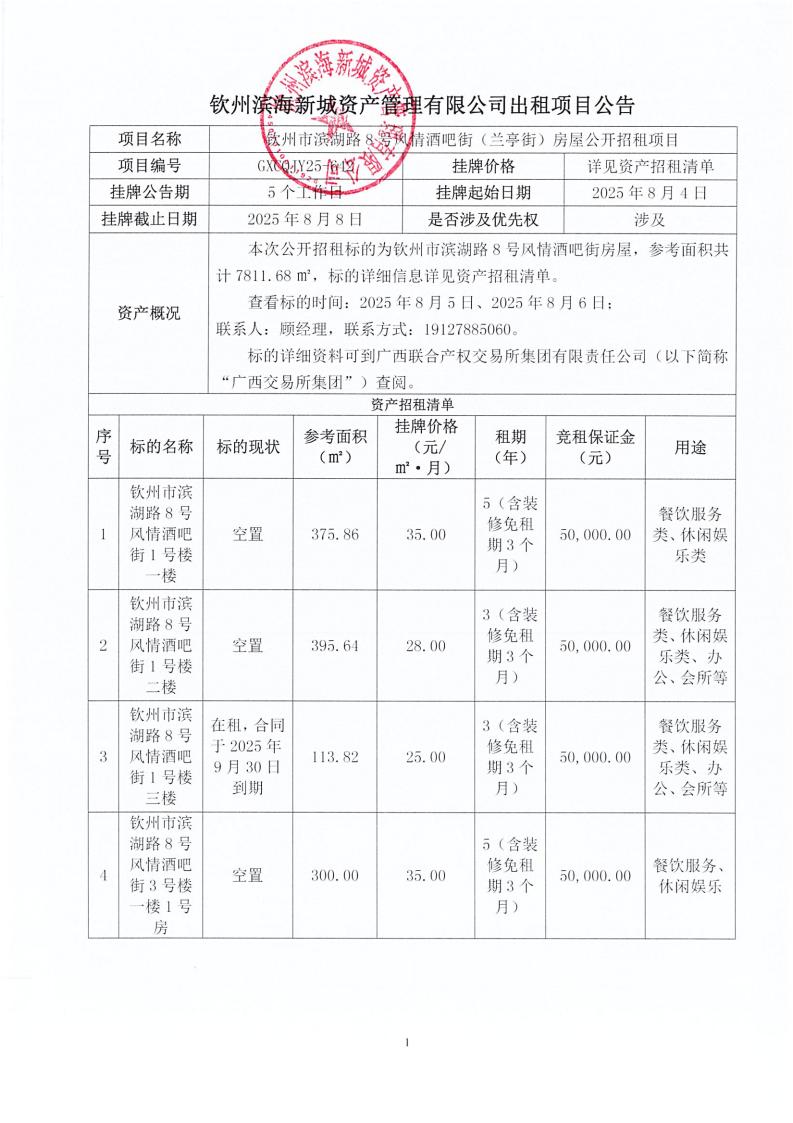 欽州市濱海文化旅游投資有限公司關(guān)于欽州市老街范圍2處房屋公開招租結(jié)果公示