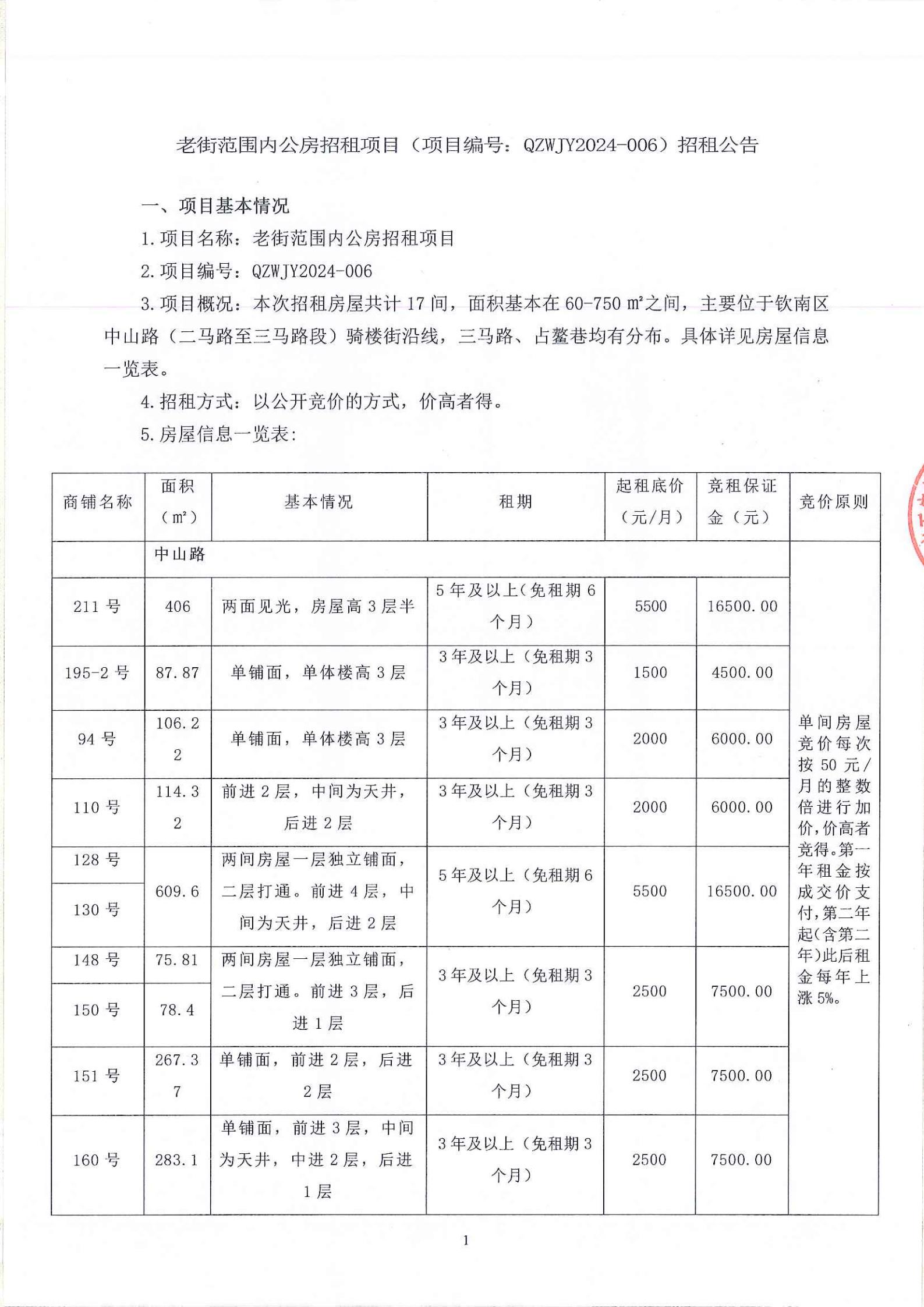 老街范圍內(nèi)公房招租項(xiàng)目招租公告