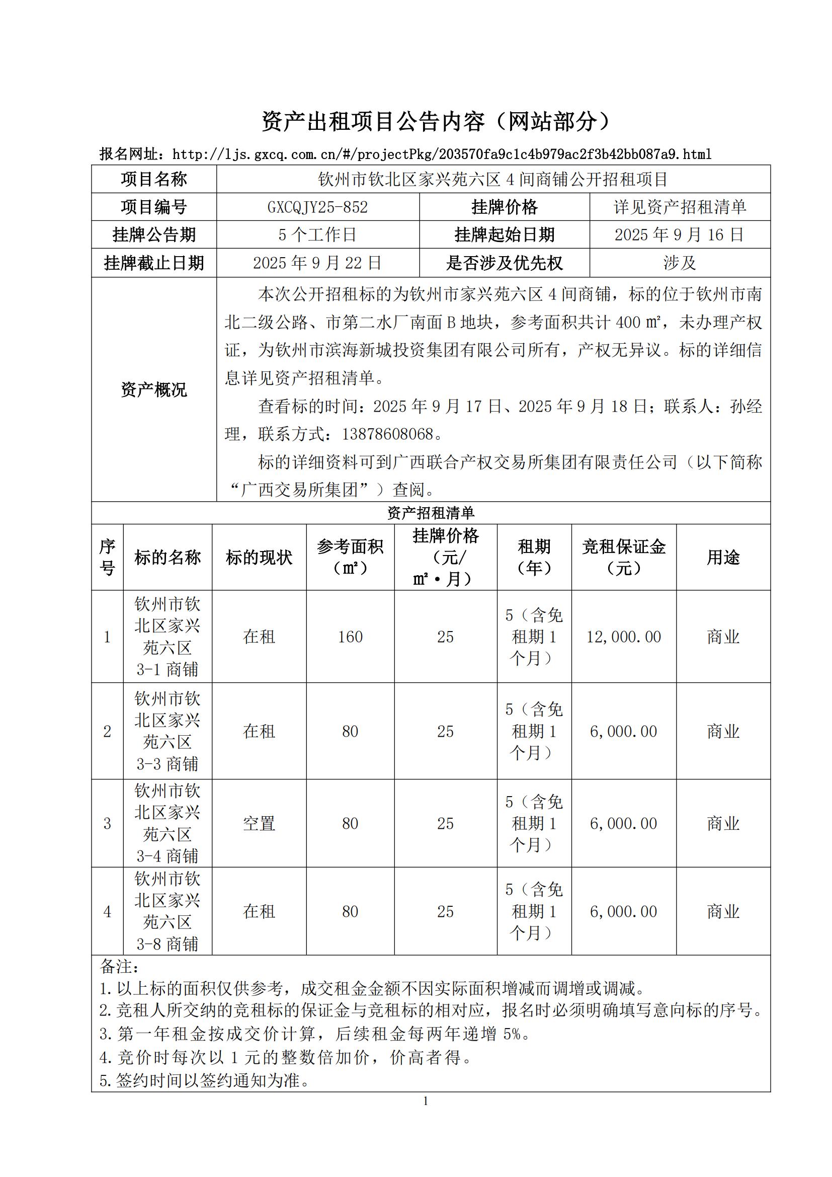 欽州市欽北區(qū)家興苑六區(qū)4間商鋪公開(kāi)招租公告