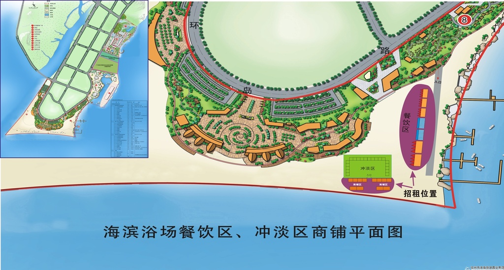 1.餐飲區(qū)域:總面積為920㎡,共30間商鋪,其中18㎡商鋪28間,208㎡商鋪2間,經(jīng)營范圍:海鮮大排檔、特色小吃、燒烤、泳衣、泳褲、游泳圈等。