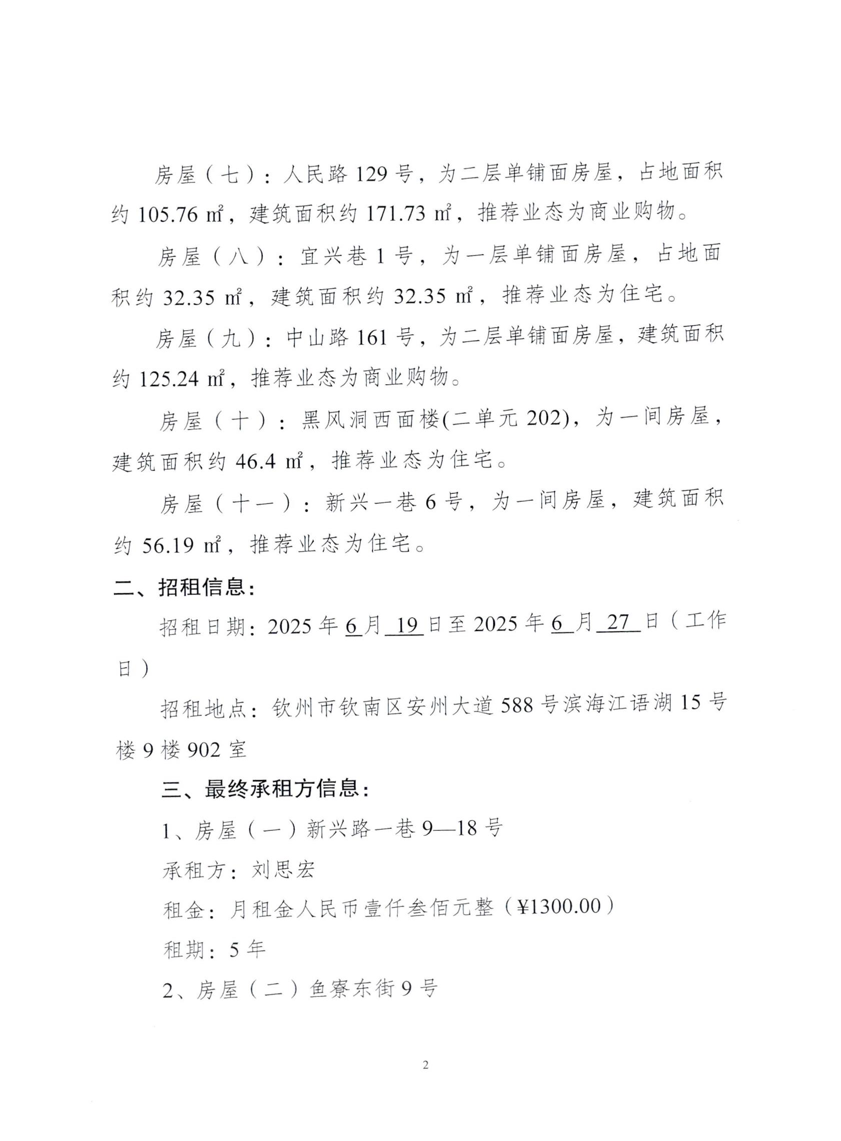 欽州市濱海文化旅游投資有限公司關(guān)于欽州市老街范圍11處房屋(場地)公開招租結(jié)果公示
