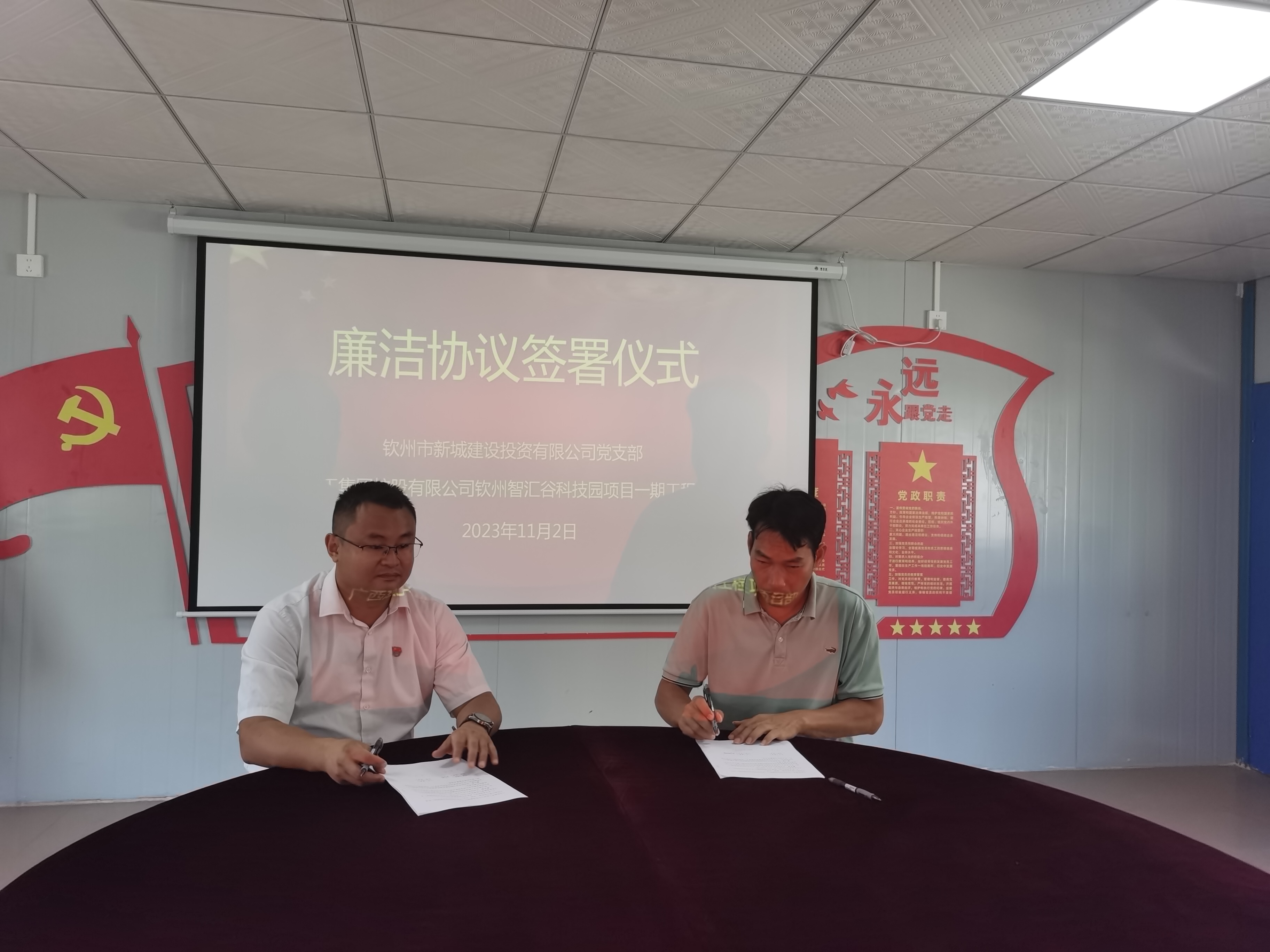 “嚴(yán)格落實(shí)項(xiàng)目合規(guī)及廉潔風(fēng)險(xiǎn)防控主體責(zé)任,在思想上劃紅線、在行為上明界線,堅(jiān)決遏制項(xiàng)目建設(shè)上腐敗現(xiàn)象的發(fā)生,保持親清企商的項(xiàng)目建設(shè)發(fā)承包方關(guān)系。”2023年11月2日,集團(tuán)公司黨委委員、副總經(jīng)理劉雙同志與智匯谷科技園項(xiàng)目一期工程項(xiàng)目經(jīng)理劉鐘明簽訂了項(xiàng)目廉潔協(xié)議,簽訂廉潔協(xié)議是集團(tuán)公司黨委夯實(shí)黨風(fēng)廉政建設(shè)的一項(xiàng)具體舉措。