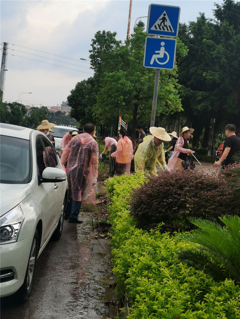 活動當天,煙雨朦朧。志愿者們有的拿著鏟子,有的拿著掃把,有的拿著垃圾簍,冒雨干起活來。