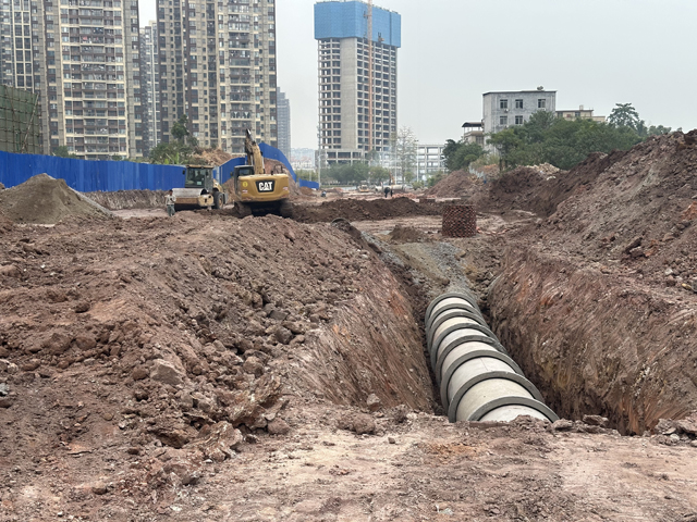 菩提路項目:該項目凌云街至平山東大街段已于11月1日正式開工,施工單位已進(jìn)場完成全段的清表工作及不良土的清除,已完成洗車平臺及工地大門等施工臨時設(shè)施建設(shè),現(xiàn)開挖約300米污水管道、300米雨水管道及完成雨污水管各250米回填砂。