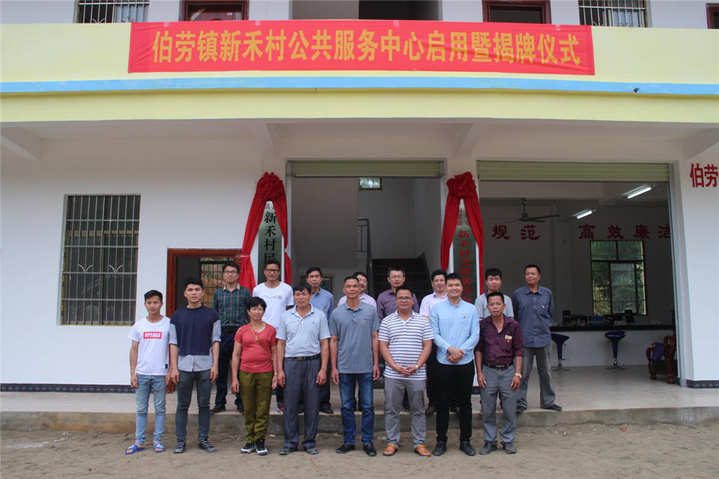 2018年4月28日上午,集團(tuán)公司扶貧幫扶聯(lián)系村——靈山縣伯勞鎮(zhèn)新禾村在新公共服務(wù)中心舉行揭牌儀式。我集團(tuán)公司和伯勞鎮(zhèn)人民政府、市檔案局、市林科所主要領(lǐng)導(dǎo)及駐村第一書記、包村工作組、村委全體成員齊聚新公共服務(wù)中心大樓前,共同見(jiàn)證新禾村新公共服務(wù)中心大樓揭牌儀式。