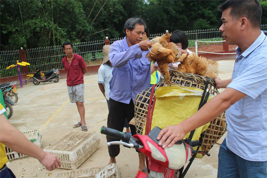 當天上午,運送雞苗的貨車從欽州市出發(fā),經(jīng)過1個小時的行程來到了靈山縣伯勞鎮(zhèn)新禾村公共服務中心,此時,貧困戶們已經(jīng)滿心歡喜地到來,攜帶裝雞苗的籠子耐心等候著?,F(xiàn)場,集團公司副總經(jīng)理楊新棟在工作人員的協(xié)助下,依次給貧困戶們發(fā)放了雞苗,楊新棟笑著對貧困戶說到:“大家領取到的雞苗平均每只重600克左右,雞苗在運出養(yǎng)殖場之前都已閹割過了,具有生長發(fā)育快、抗病能力強、成活率高、市場效益好等特點,大家回去后要管護好雞苗,讓扶貧雞真正為大家?guī)砻撠毾M?rdquo;,看著一只只活潑亂跳、帶著脫貧希望的雞苗裝進了自家的籠子里,貧困戶們笑得合不攏嘴,心里樂開了花。