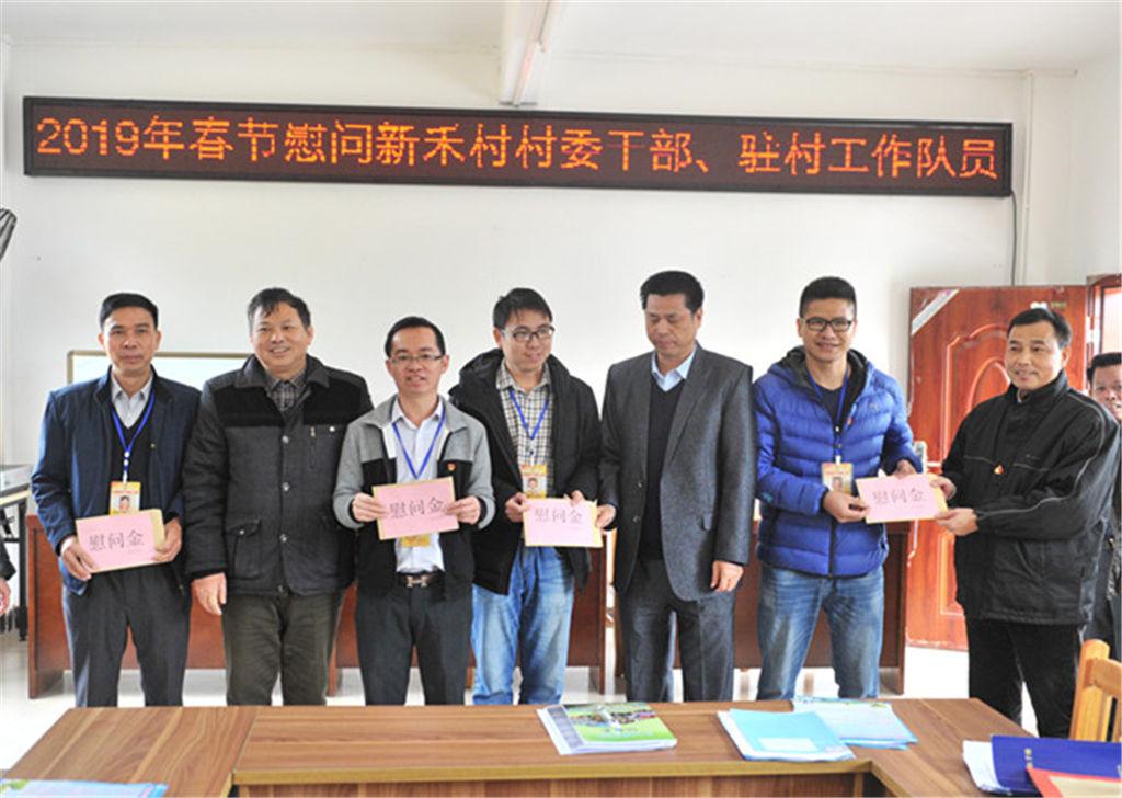 春節(jié)來臨之際,為讓困難黨員、貧困戶、村干部和駐村工作隊(duì)員渡過一個歡樂祥和的春節(jié),集團(tuán)公司副總經(jīng)理?xiàng)钚聴澛暑I(lǐng)黨員干部冒著嚴(yán)寒,帶著濃濃暖意前往幫扶聯(lián)系點(diǎn)靈山縣伯勞鎮(zhèn)新禾村開展春節(jié)慰問活動,送上集團(tuán)公司的關(guān)懷問候和新春祝福。