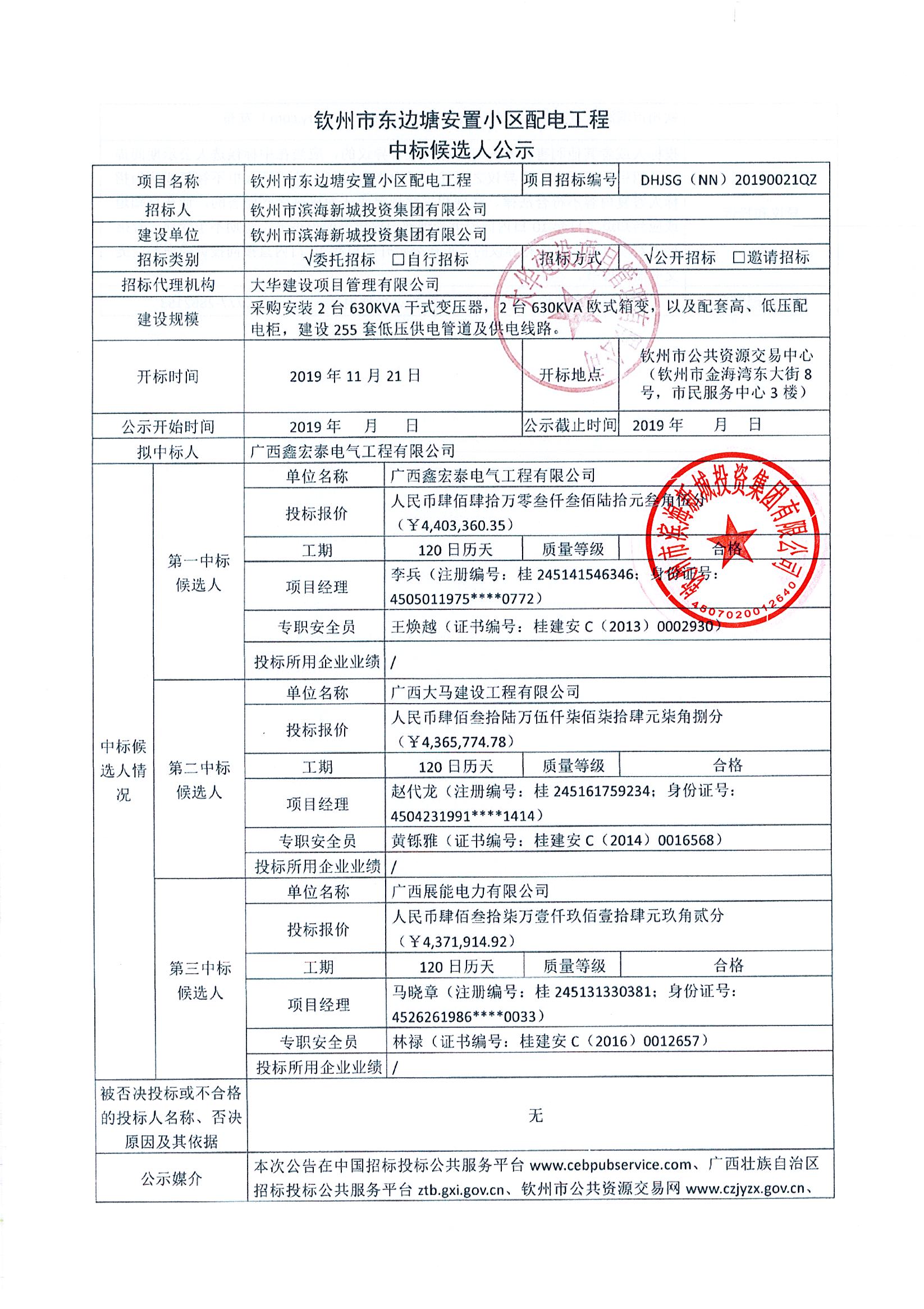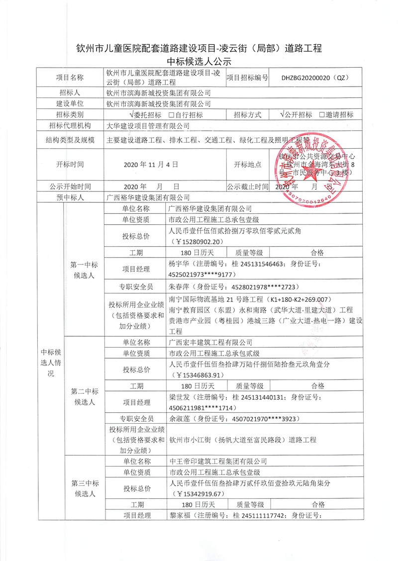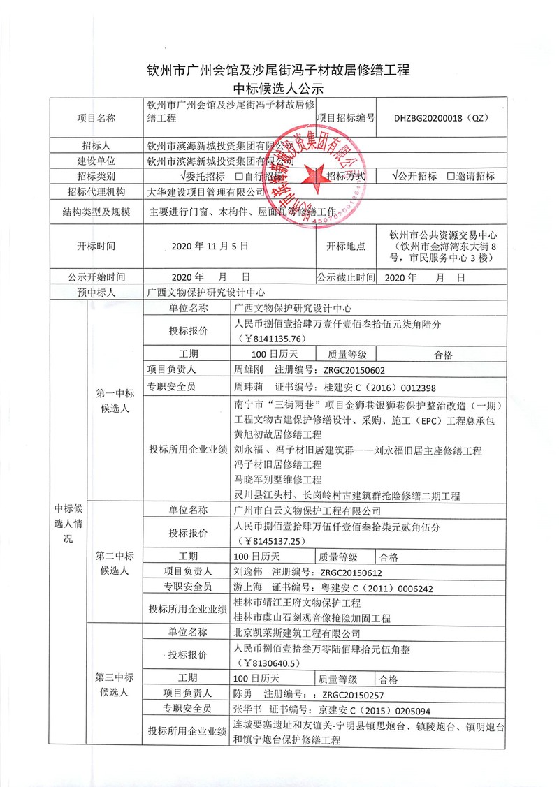 欽州市濱海新城嘉興街(嘉禾街-揚(yáng)帆大道)道路工程及嘉興街(揚(yáng)帆大道-安州大道)地下綜合管廊項(xiàng)目、欽州市公安局沙埠派出所項(xiàng)目、欽州市濱海新城安州大道中段與環(huán)城南路交叉路口工程綜合檢測中標(biāo)候選人公示 項(xiàng)目名稱 欽州市濱海新城嘉興街(嘉禾街-揚(yáng)帆大道)道路工程及嘉興街(揚(yáng)帆大道-安州大道)地下綜合管廊項(xiàng)目、欽州市公安局沙埠派出所項(xiàng)目、欽州市濱海新...
