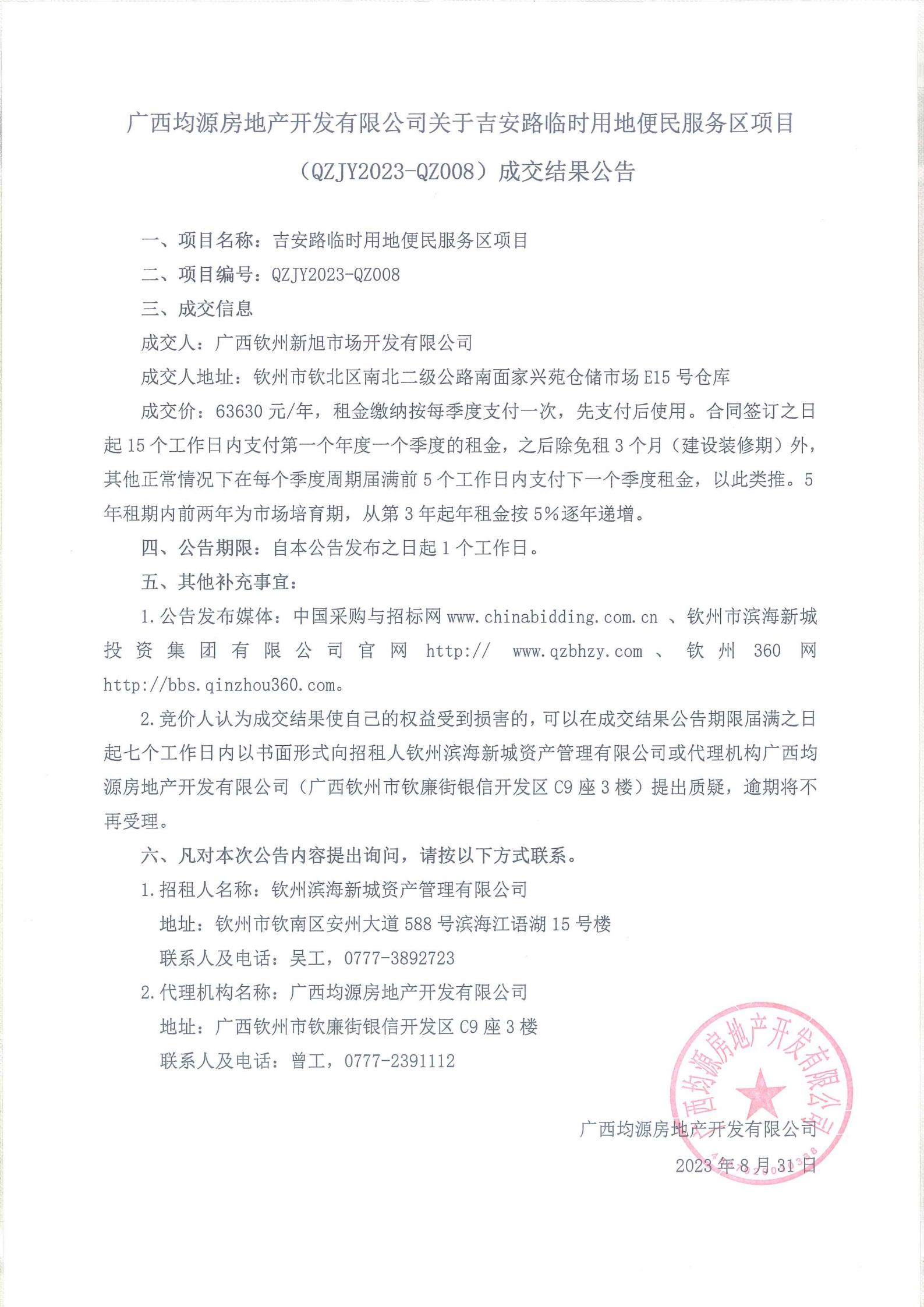 關(guān)于吉安路臨時用地便民服務區(qū)項目成交結(jié)果公告