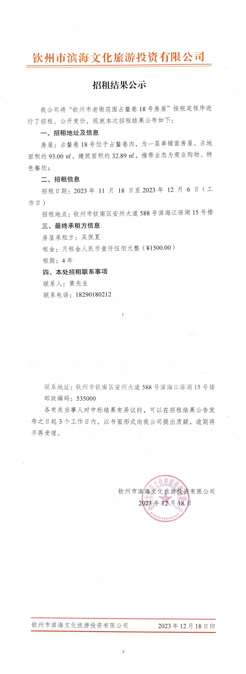 關(guān)于欽州市老街范圍人民南路118號房屋公開招租的公示
