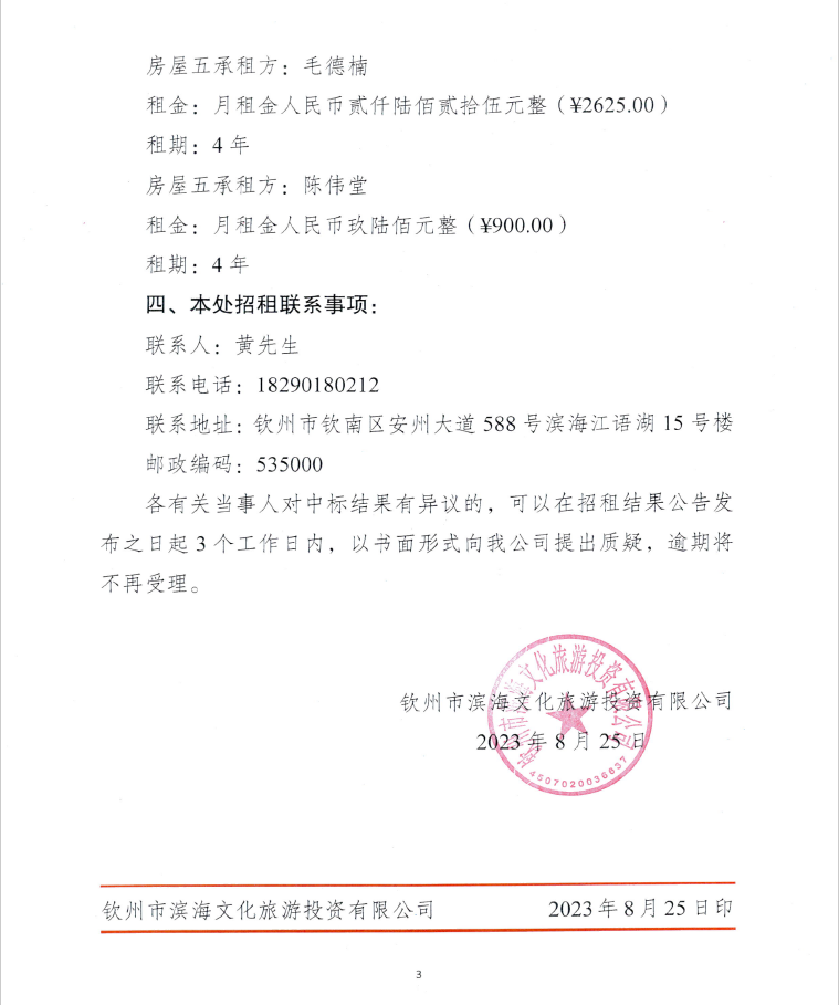 關(guān)于欽州市北部灣人才創(chuàng)業(yè)基地公寓樓整體出租項目成交結(jié)果公告