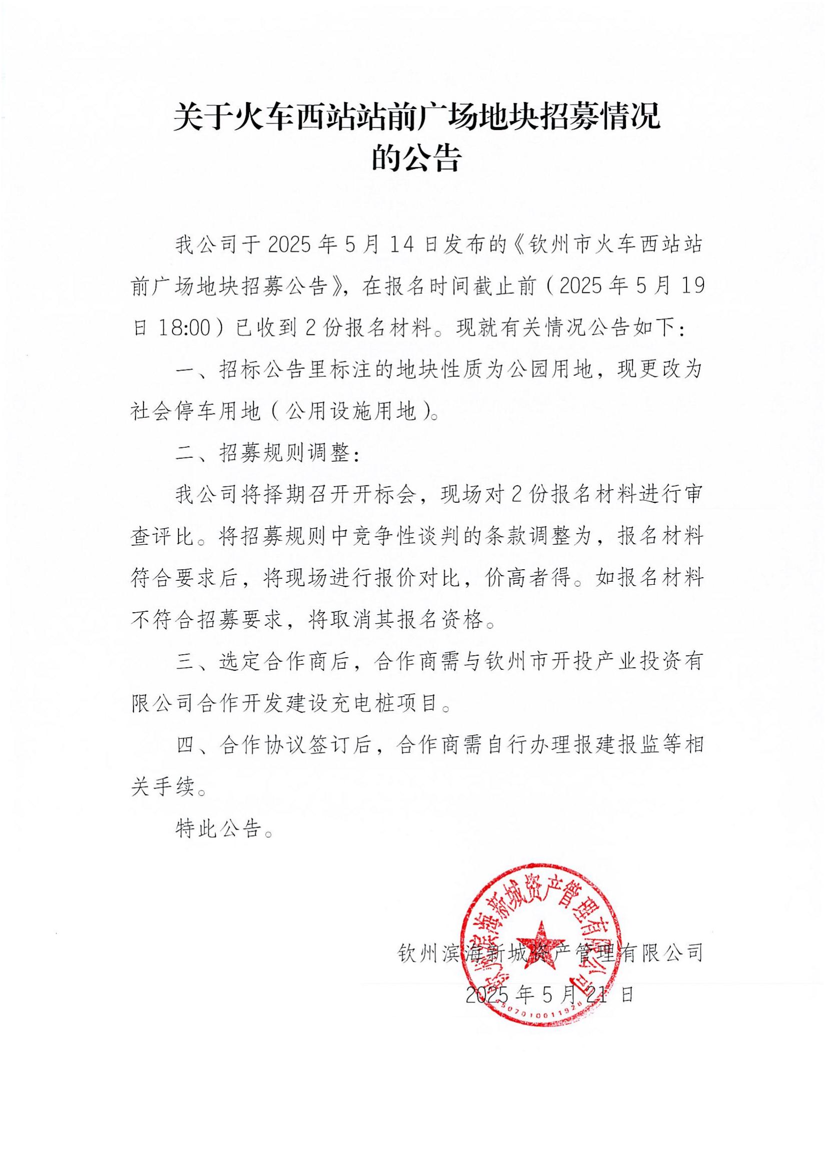 關(guān)于火車西站站前廣場地塊招募情況的公告