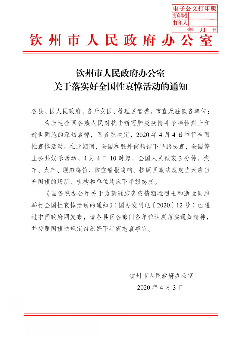 關(guān)于落實(shí)好全國(guó)性哀悼活動(dòng)的通知