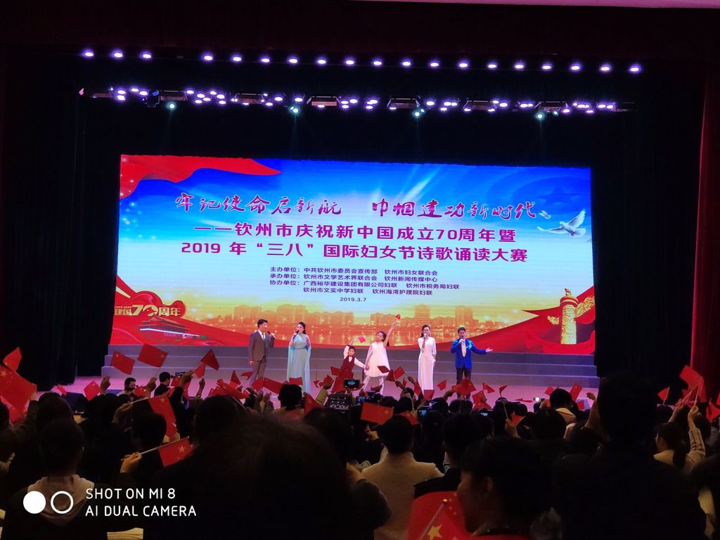 2019年是新中國成立70周年,是決勝全面建成小康社會、實現(xiàn)第一個百年奮斗目標的關(guān)鍵之年,也是貫徹落實中國婦女十二大目標任務(wù)的開局之年。為激勵全市廣大婦女把握時代主題,貢獻巾幗力量,由欽州市委宣傳部、欽州市婦女聯(lián)合會主辦的“欽州市慶祝新中國成立70周年暨2019年 國際婦女節(jié)詩歌誦讀大賽”在欽州市老年大...