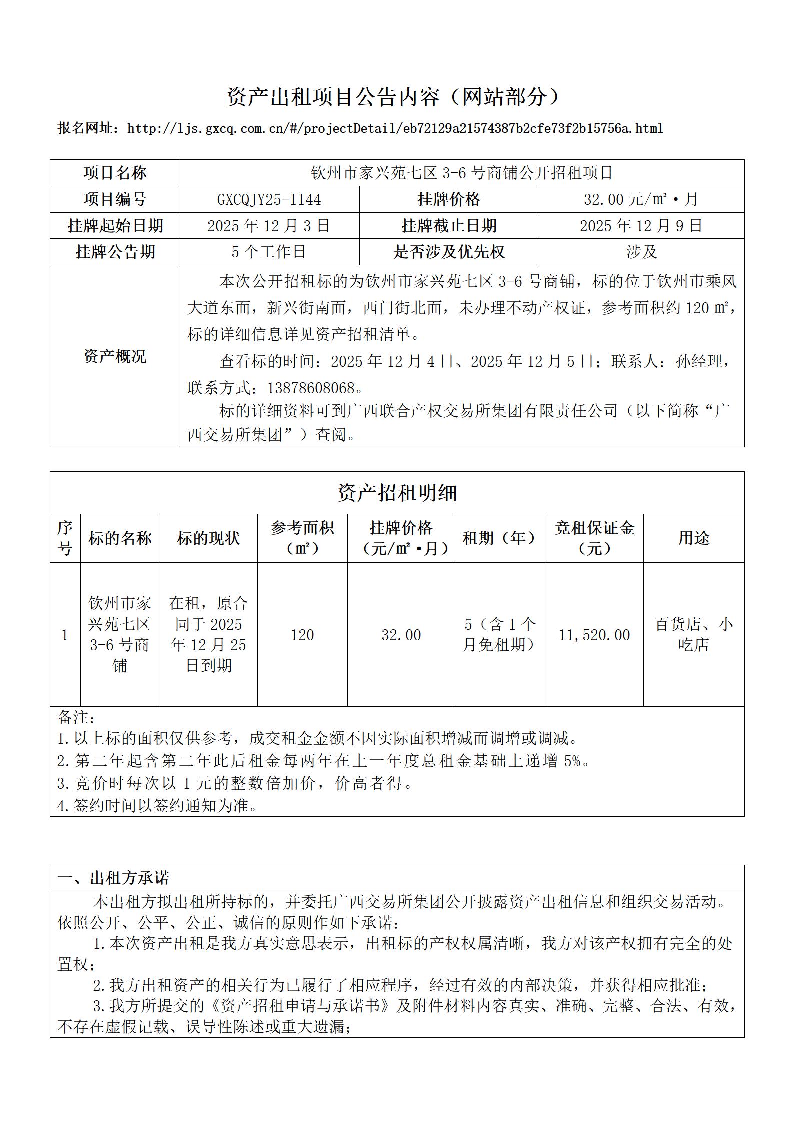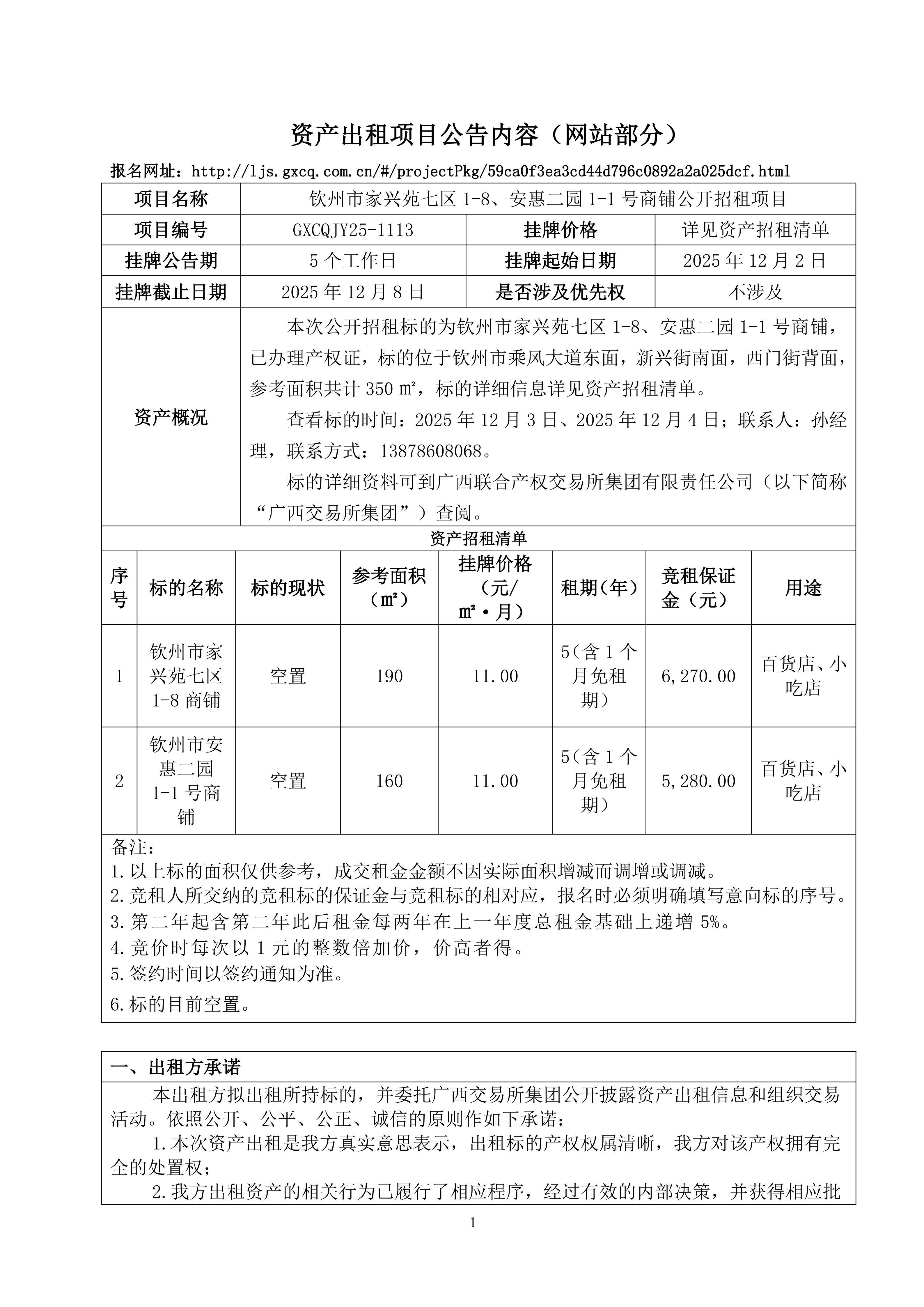欽州市安惠一園幼兒園資產(chǎn)出租項(xiàng)目公告內(nèi)容(公共資源)