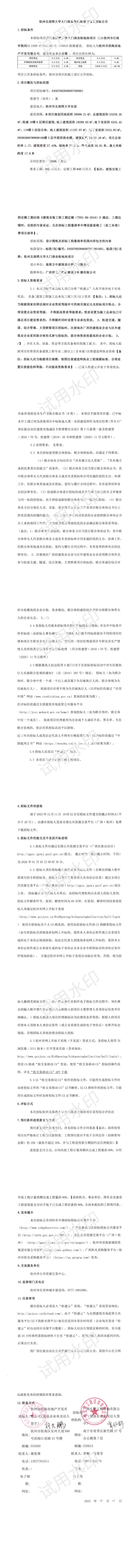 欽州北部灣大學(xué)大門商業(yè)街地塊項(xiàng)目施工招標(biāo)公告