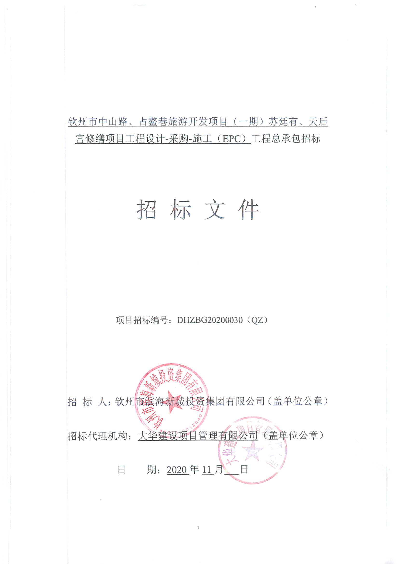 欽州市中山路、占鰲巷旅游開發(fā)項(xiàng)目(一期)蘇廷有、天后宮修繕項(xiàng)目工程設(shè)計(jì)-采購-施工(EPC)工程總承包招標(biāo)公告