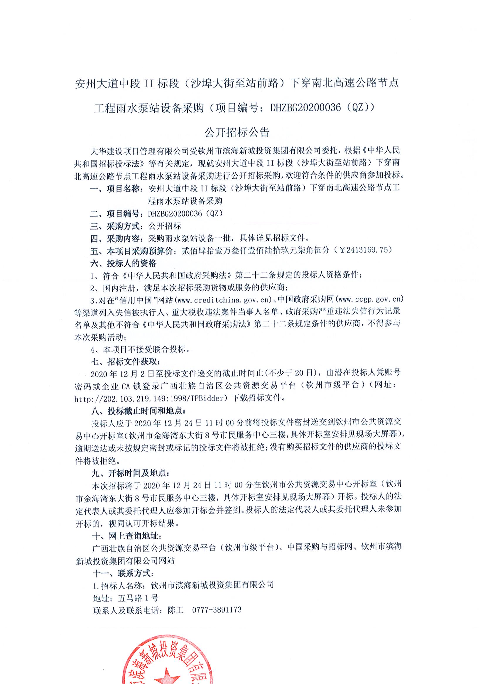 安州大道中段II標(biāo)段(沙埠大街至站前路)下穿南北高速公路節(jié)點(diǎn)工程雨水泵站設(shè)備采購公開招標(biāo)公告