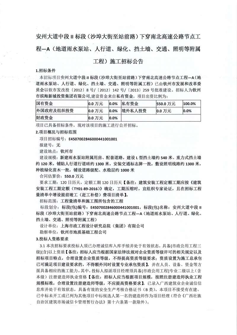 安州大道中段II標(biāo)段(沙埠大街至站前路)下穿南北高速公路節(jié)點(diǎn)工程—A(地道雨水泵站、人行道、綠化、擋土墻、交通、照明等附屬工程)施工招標(biāo)公告