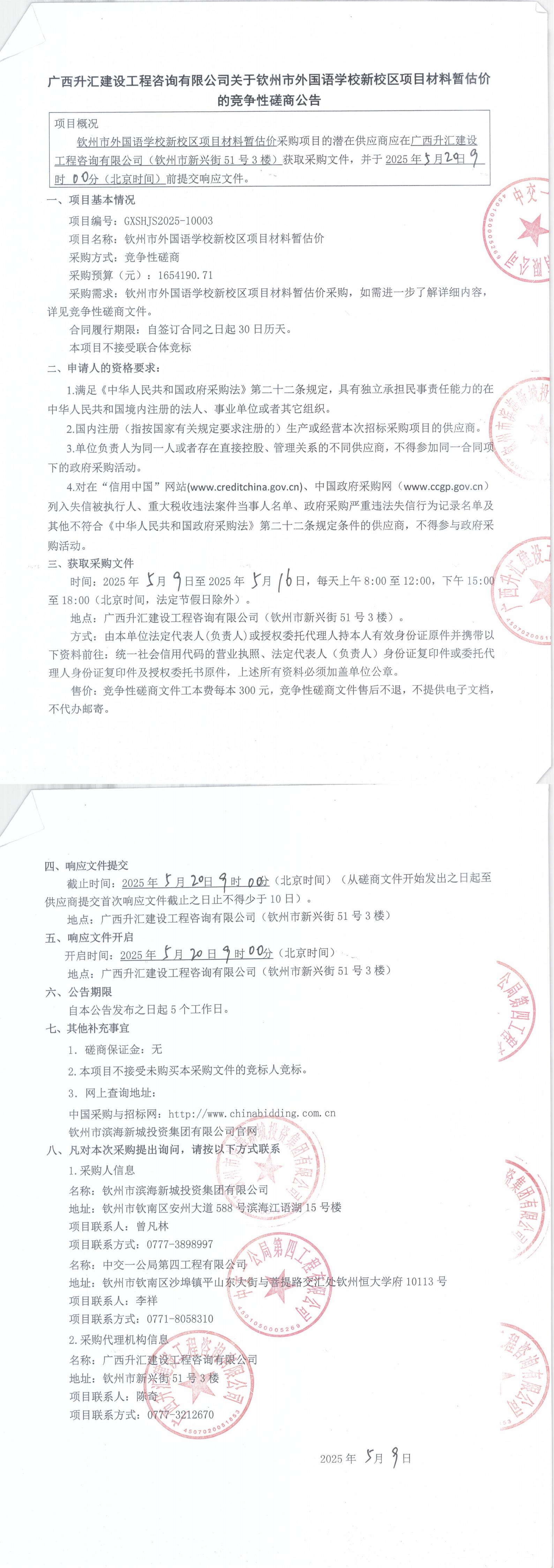 關(guān)于欽州市外國語學校新校區(qū)項目材料暫估價的競爭性磋商公告