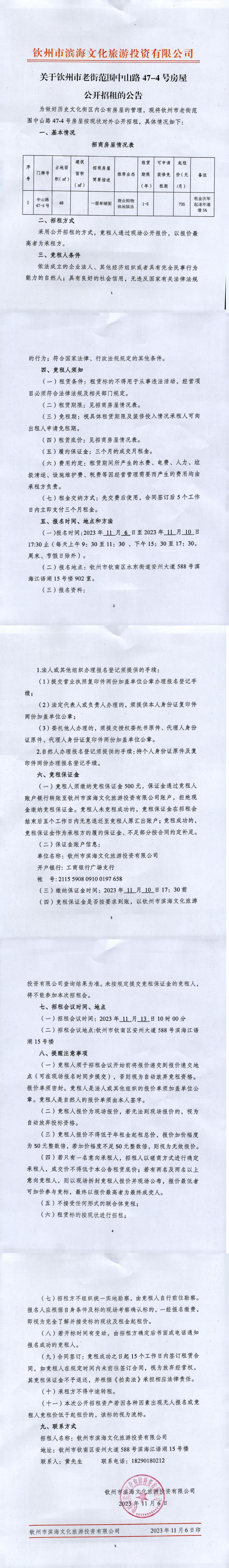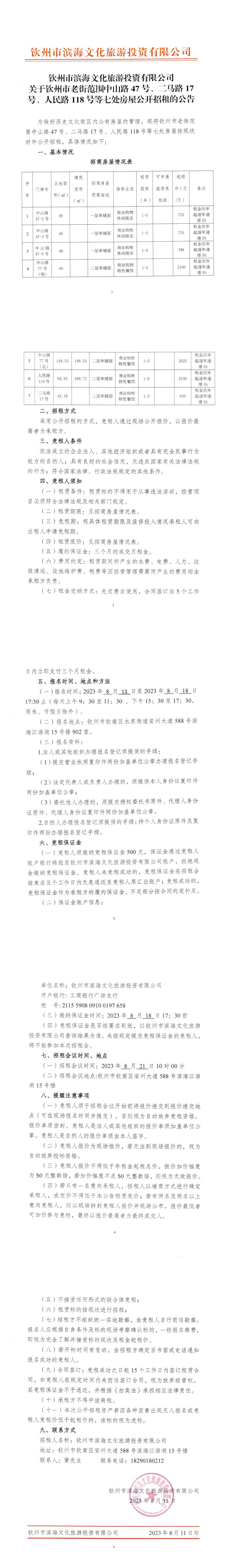 關(guān)于欽州市老街范圍中山路47號(hào)、二馬路17號(hào)、人民路118號(hào)等七處房屋公開招租的公告