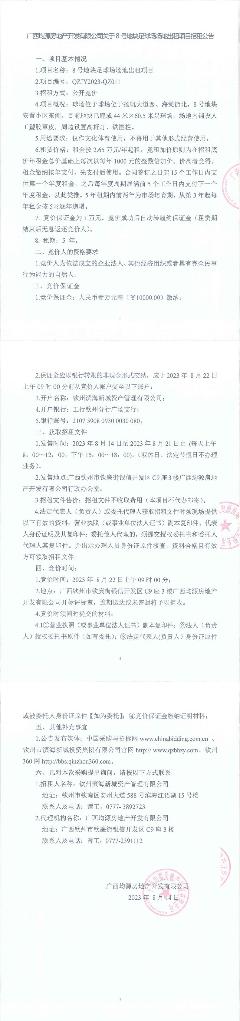 關(guān)于8號(hào)地塊足球場場地出租項(xiàng)目招租公告