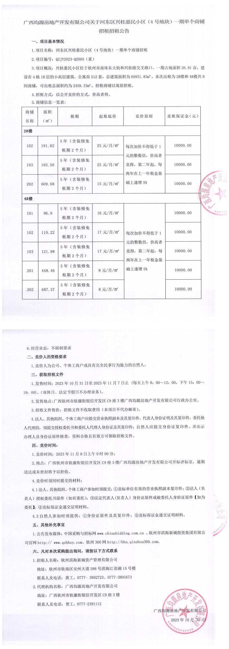關(guān)于興桂惠民小區(qū)(4號(hào)地塊)二期商鋪招租公告