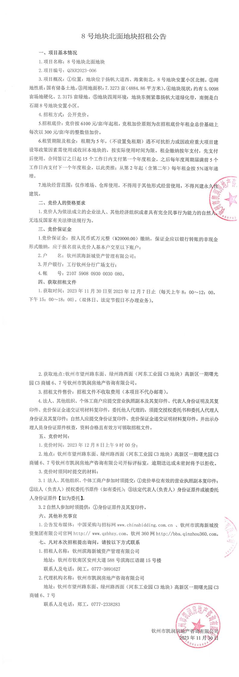 關(guān)于欽州市廉租房家興苑七區(qū)、安惠二園商鋪出租項(xiàng)目招租公告