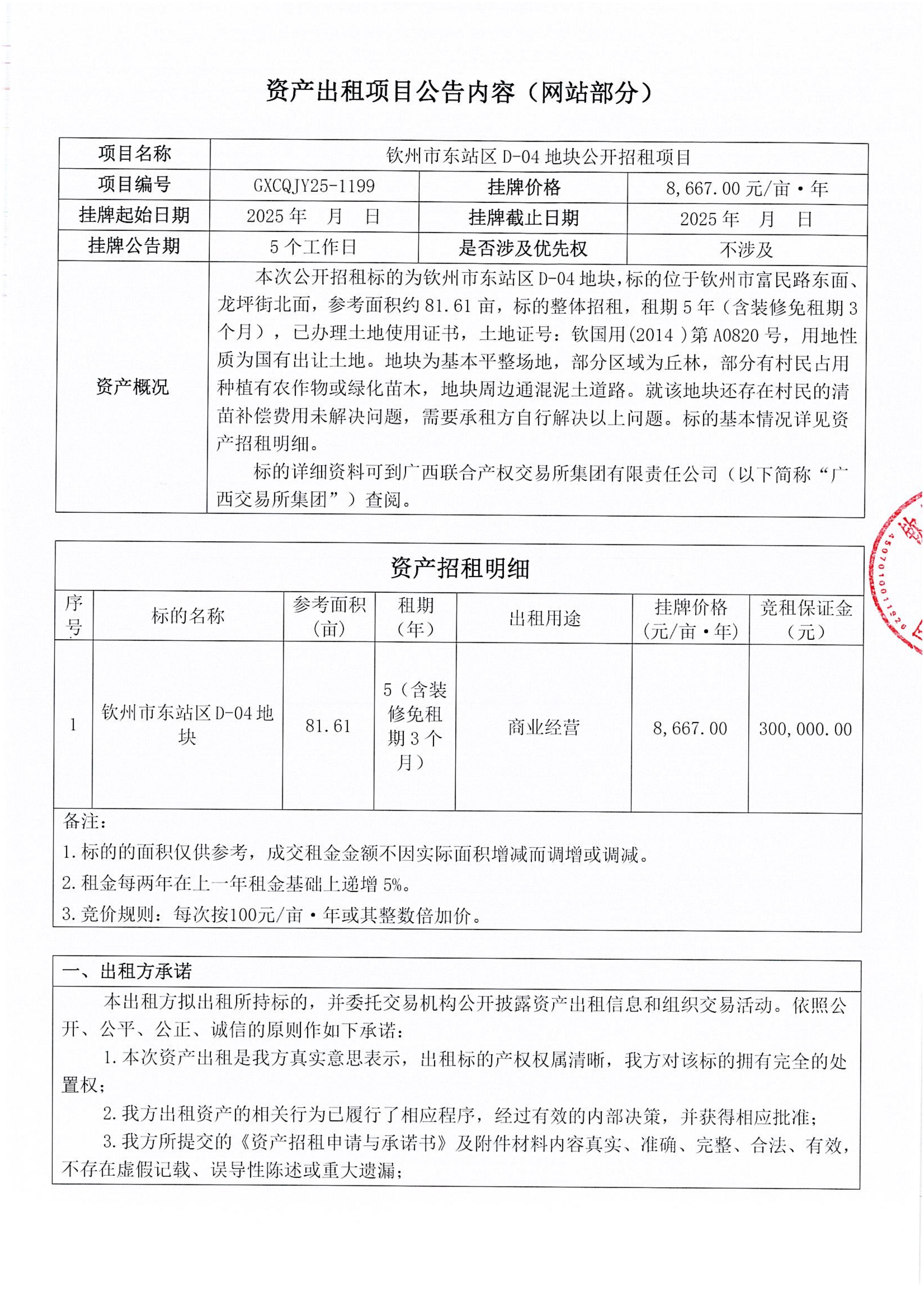欽州市東站區(qū)D-04地塊公開(kāi)招租項(xiàng)目